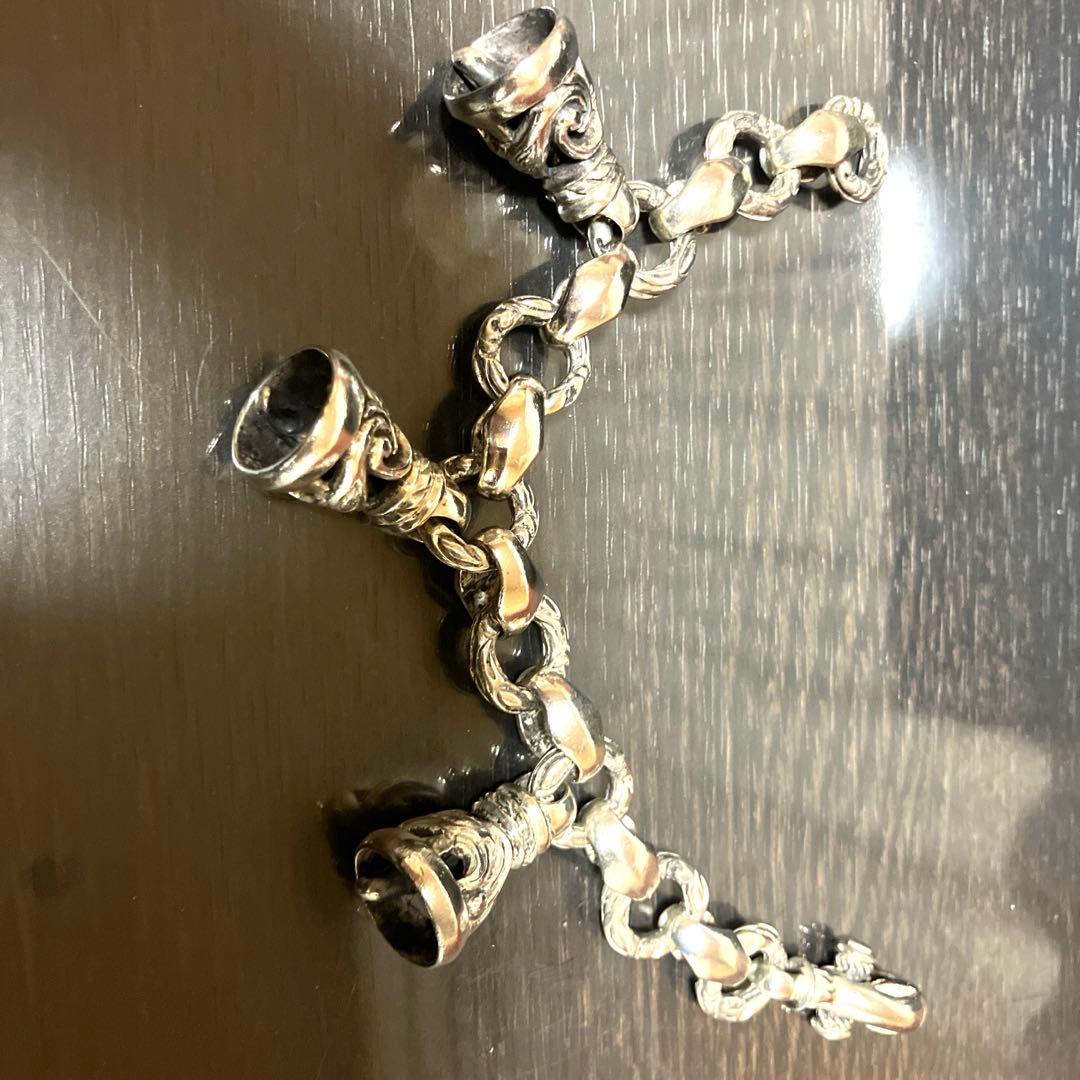 自身保有のコレクションを少し手放します。ワンオーナー品。私自身がアンダーカバー阪急メンズ館東京にて購入した物です。箱、プライスタグ付属。名作GIZ柄バングル。特に説明不要の名品です。年代、スタイル問わず長く愛用できるかと。2013〜2016年頃購入だったかと思います。サイズはMカラーはシルバー×ゴールド素材はシルバー925あまり目立ちませんが経年で若干剥がれ?のような箇所ございます。予めご了承ください。内側サイズ横58mm、縦45mm手首を通すところ23mmご不明点はご質問ください。よろしくお願いします。