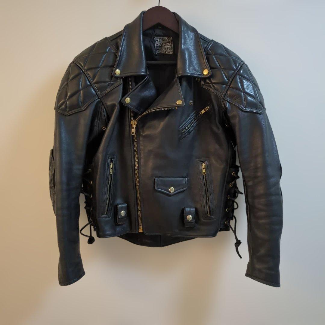 以前古着屋で購入した。レザージャケット。体型の変化に伴い出品します。表記はMサイズですがLサイズ相当です。肩幅52身幅55着丈74袖丈61