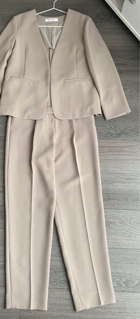 数年前に式典に着用のため百貨店で購入し1度着用しました。その後クリーニング店に出して自宅保管してありました。掲載にあたり、再度みてみましたが、目立つシミ、汚れはありませんでした。汗ぬき加工していましたサイズ ノーカラージャケットは36号(7号サイズかと思います)ワンピースは38号(9号サイズかと思います)ウエストの部分は左側だけタックが入り、巻きスカート風になっています。きちんと縫い合わされていて、巻きスカートではありませんので座ったとき、歩行時には脚がみえることはありませんジャケットには本来ボタンもホックもありませんでしたが、購入時にホックをつけてもらっています素材ジャケット表地毛88%ナイロン8%ポリウレタン4%身頃裏キュプラ100%袖裏ポリエステル95%ポリウレタン5%ワンピース表地毛88%ナイロン8%ポリウレタン4%裏地キュプラ100%サイズ(素人採寸です)ジャケット36号着丈約57cm肩幅約37cmバスト約85cm袖丈約59cmワンピース38号着丈約98cm袖丈約16cmバスト約92cmカラーは、ライトグレー即購入OKですがジャケットとワンピースのサイズが違うこと、自宅保管していたことなど、ご了承いただき、ノークレームノーリターンでお願いしますご覧いただきありがとうございますカラー...グレー汚れ・破れ・臭いなど...なし